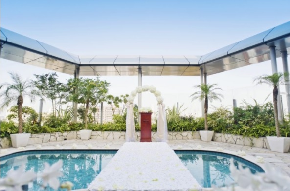 最上階にあるレストラン&BARラウンジ ガーデンプール付きで結婚式のシーンにも最適です